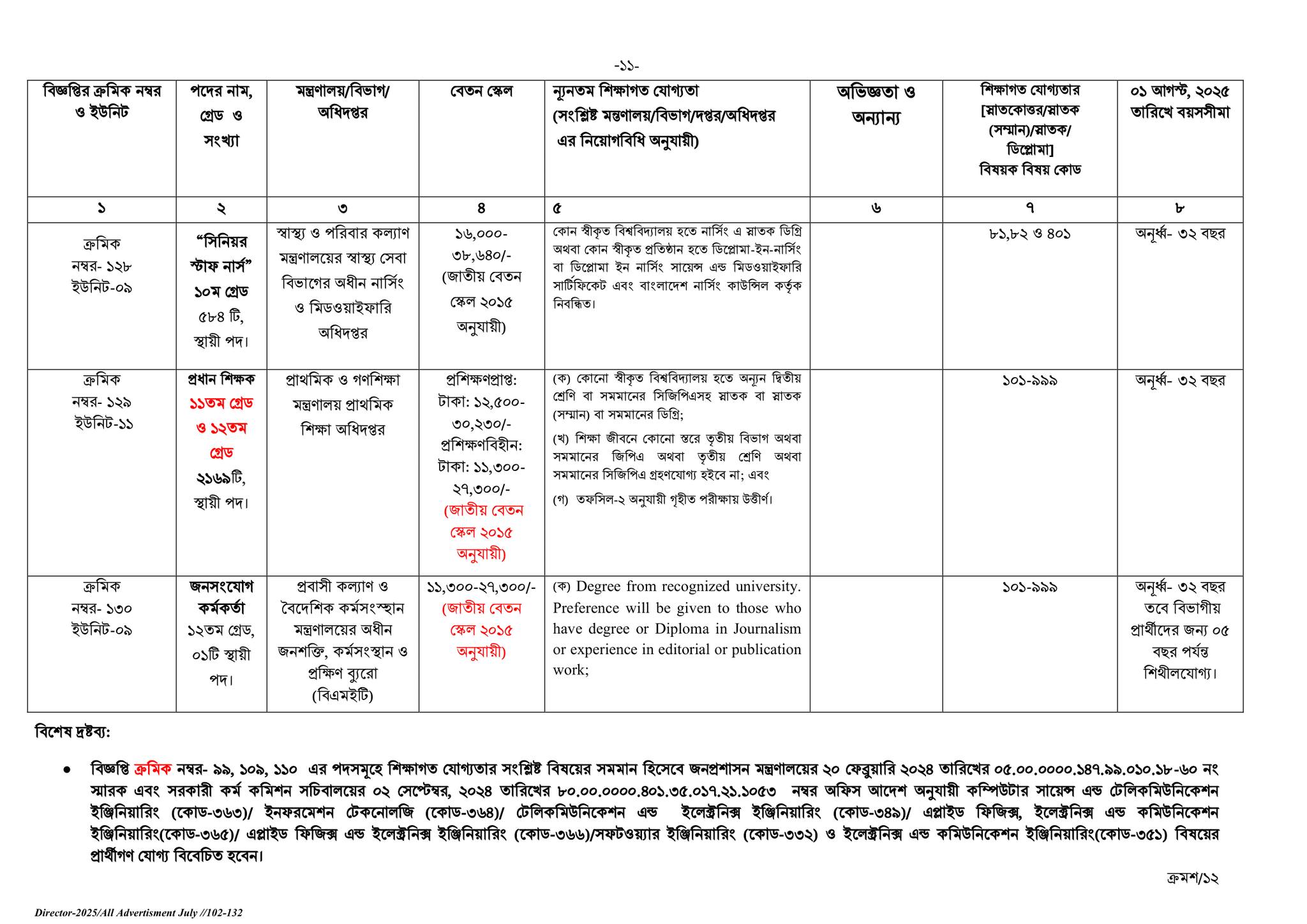 বিজ্ঞপ্তি অনুসারে, প্রশিক্ষণপ্রাপ্তদের জন্য ১১তম গ্রেড এবং প্রশিক্ষণবিহীনদের জন্য ১২তম গ্রেড নির্ধারণ করা হয়েছে। জাতীয় বেতন স্কেল ২০১৫ অনুযায়ী এই গ্রেড নির্ধারণ করা হয়েছে।