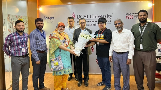 অধ্যাপক ড. হোসেনকে স্বাগত জানান ইউসিএসআই ইউনিভার্সিটি বাংলাদেশ ক্যাম্পাসের রেজিস্ট্রার অধ্যাপক ড. শাহ সামিউর রশিদ, ডেপুটি রেজিস্ট্রার সৈয়দ লুবাব রাহমান, এফসিএসডিআইর ফ্যাকাল্টি এইচএম মোস্তাফিজুর রহমান, নিয়াজ মাখদুম এবং শিক্ষার্থী প্রতিনিধিরা।
