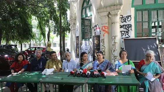 সংবাদ সম্মেলনে লিখিত বক্তব্য পাঠ করেন ঢাকা বিশ্ববিদ্যালয়ের শিক্ষক তাহমিনা আক্তার ও মোশাহিদা সুলতানা। তারা উল্লেখ করেন, হাইকোর্টে একজন প্রার্থীর রিটকে কেন্দ্র করে সমাজবিজ্ঞান বিভাগের শিক্ষার্থী আলী হুসেন ফেসবুক পোস্টের মাধ্যমে ওই নারী প্রার্থীকে গণধর্ষণের হুমকি দিয়েছেন বলে জানা গেছে। এ ঘটনায় আলী হুসেনকে যথাযথ প্রক্রিয়ার মাধ্যমে দৃষ্টান্তমূলক শাস্তি দিতে হবে, যাতে ভবিষ্যতে এ ধরনের ঘটনার পুনরাবৃত্তি না ঘটে।