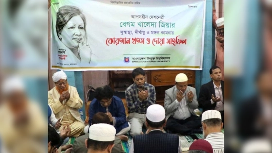 বিএনপির চেয়ারপারসন বেগম খালেদা জিয়ার সুস্বাস্থ্য, দীর্ঘায়ু ও মঙ্গল কামনায় কোরআন খতম ও দোয়া মাহফিল করেছে বাংলাদেশ উন্মুক্ত বিশ্ববিদ্যালয় (বাউবি)।