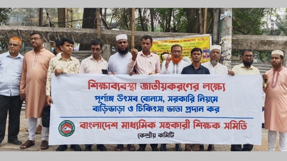 পূর্ণাঙ্গ উৎসব বোনাস ও সরকারি নিয়মে বাড়িভাড়ার দাবিতে শিক্ষামন্ত্রী মহিবুল হাসান চৌধুরী বরাবর স্মারকলিপি দিয়েছে বাংলাদেশ মাধ্যমিক সহকারী শিক্ষক সমিতি।