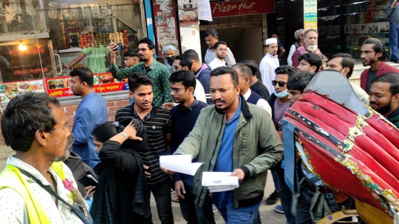 বৃহস্পতিবার (২৮ ডিসেম্বর) রাজধানীর বসুন্ধরা আবাসিক এলাকায় ও যমুনা ফিউচার পার্ক সংলগ্ন এলাকায় লিফলেট বিতরণ করা হয়। এতে নেতৃত্ব দেন ছাত্রদলের সাবেক সভাপতি ও বিএনপির জাতীয় নির্বাহী কমিটির সদস্য কাজী রওনকুল ইসলাম শ্রাবণ।