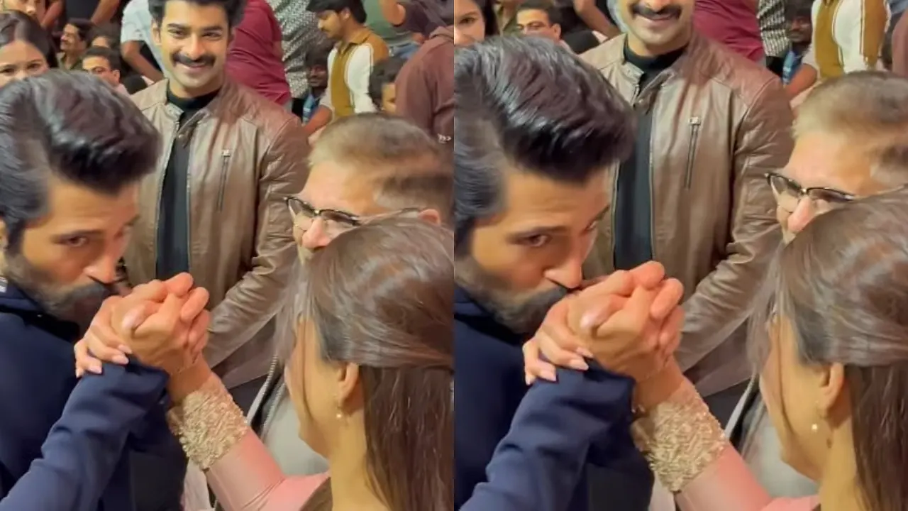 অনুষ্ঠানের আলো ঝলমলে মঞ্চে হঠাৎই দেখা যায়, বিজয় আলতো করে রাশমিকার হাত ধরে চুম্বন করছেন। মুহূর্তটি ছিল সংক্ষিপ্ত, কিন্তু সেই কোমল স্পর্শে যেন ভালোবাসার হাজার রঙ মিশে ছিল। উপস্থিত সবাই থমকে গিয়েছিলেন, আর মুহূর্তের মধ্যেই সেই দৃশ্য ছড়িয়ে পড়ে সোশ্যাল মিডিয়ায়।