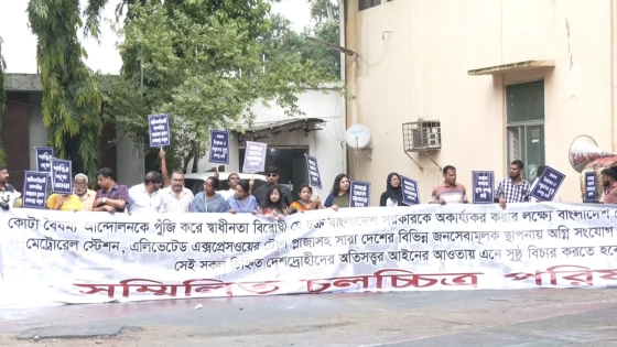 চিত্রনায়িকা অরুণা বিশ্বাস বলেন, পৃথিবীর কোনো মা, বাবা সন্তানের মৃত্যুকামনা করে না, করতে পারে না। প্রাকৃতিক মৃত্যুও কামনা করি না। মেনে নেওয়া যায় না। আমি একজন মা হিসেবে এখানে এসেছি। প্রতিটি হত্যার বিচার চাই। সাধারণ মানুষ, ছাত্র, সাংবাদিক হত্যার বিচার চাই। পুলিশ ভাইদের মেরে যারা লাশ ঝুলিয়ে রেখেছে তাদেরও বিচার চাই। আমরা ছাত্রদের পক্ষে আছি। কিন্তু কিছু মানুষ আগুনে ঘি ঢালছে এটা আপনাদের মাথায় রাখতে হবে।