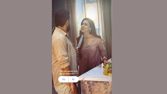 ছবিটিতে দেখা যাচ্ছে, হাতে ছুরি নিয়ে সহঅভিনেতার সামনে দাঁড়িয়ে রয়েছেন মিম। আর অভিনেতা পেছন ফিরে মিমের দিকে তাকিয়ে আছেন। ছবির এই দৃশ্যতে সহজে বুঝার উপায় নেই, মিমের সহঅভিনেতা আসলে কে।
