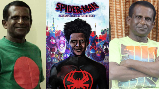 ছবিটির নেপথ্যের কাহিনি জানতে দুর্জয়ের সঙ্গে যোগাযোগ করে কালবেলা। তিনি বলেন, ‘আমি ফটোশপ দিয়ে ছবিটি বানিয়েছি। স্পাইডারম্যান অ্যাক্রোজ দ্য স্পাইডার ভার্সের ক্যারেকটার মাইলস মোরালেস, সেখানে আমি হাসান মাসুদের ছবি ব্যবহার করেছি।’