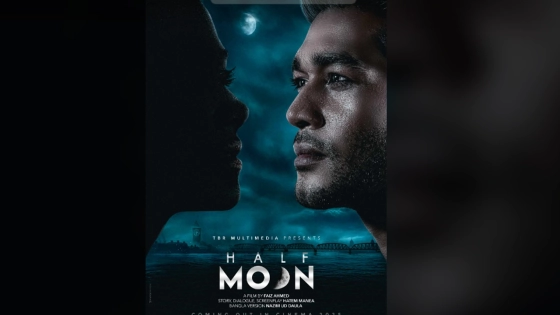 বুধবার (২৮ ফেব্রুয়ারি) দুপুরে যুক্তরাজ্যের প্রযোজনা প্রতিষ্ঠান টিবি আর মাল্টিমিডিয়ার ফেসবুক পেজে প্রকাশ করা সিনেমাটির একটি পোস্টার। যা দেখা মাত্রই রহস্যের আঁচ পাওয়া যায়। একইসঙ্গে ‘হাফ মুন’ বা অর্ধ চন্দ্র নামের যেন যথার্থ প্রয়োগ খুঁজে পাওয়া গেল এতে।