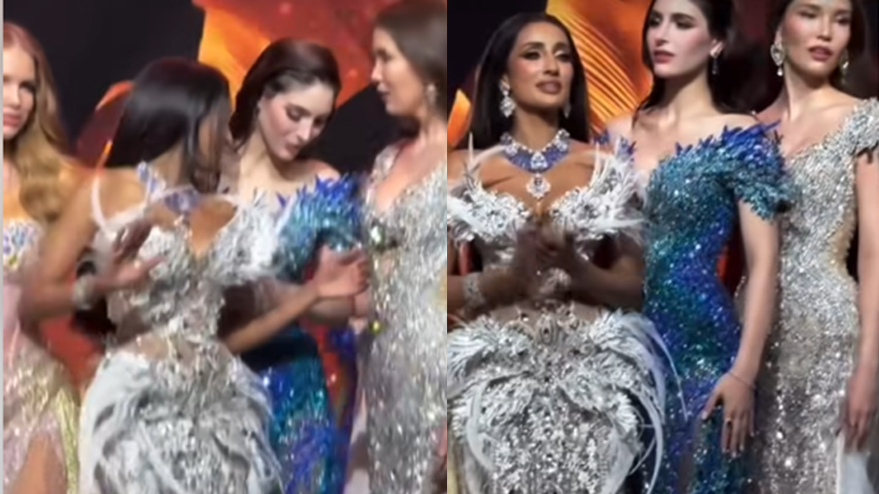 মিস ইউনিভার্সের মঞ্চে ঝলমলে আলোয় যখন সারা দুনিয়ার সুন্দরীরা সারিবদ্ধ ভাবে দাঁড়ানো, ঠিক সেই মুহূর্তেই ঘটল এমন এক দৃশ্য, যা মুহূর্তেই ছড়িয়ে পড়ল দুনিয়াজুড়ে।