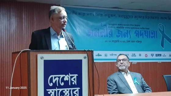 জরায়ুমুখের ক্যানসার সচেতনতা বাড়াতে ঢাকা থেকে গাজীপুর পর্যন্ত পদযাত্রা শুরু করেছে গণস্বাস্থ্য সমাজভিত্তিক ক্যানসার হাসপাতাল ও গবেষণা কেন্দ্র।