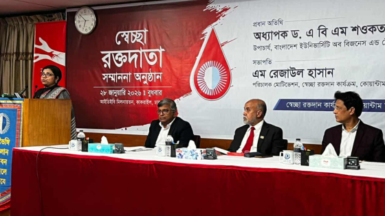 বুধবার (২৮ জানুয়ারি) সন্ধ্যায় রাজধানীর কাকরাইলস্থ আইডিইবি মিলনায়তনে কোয়ান্টাম আয়োজিত স্বেচ্ছা রক্তদাতা সম্মাননা অনুষ্ঠানে প্রধান অতিথি হিসেবে উপস্থিত ছিলেন বাংলাদেশ ইউনিভার্সিটি অব বিজনেস অ্যান্ড টেকনোলজির উপাচার্য অধ্যাপক ড. এ বি এম শওকত আলী।