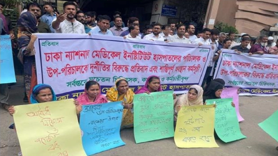 রোববার (২৪ মার্চ) সকালে ঢাকা ন্যাশনাল মেডিকেল ইনস্টিটিউট হাসপাতালের সামনে এই প্রতিবাদ সমাবেশ অনুষ্ঠিত হয়।