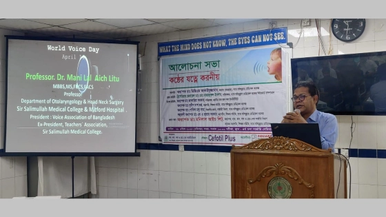 বিশ্ব কণ্ঠ দিবস উপলক্ষে গত রোববার (২৮ এপ্রিল) স্যার সলিমুল্লাহ মেডিকেল কলেজ ও মিটফোর্ড হাপাতালের নাক, কান ও গলা বিভাগ আয়োজিত কণ্ঠের যত্মে করণীয় শীর্ষক আলোচনা সভায় তিনি এ কথা বলেন।