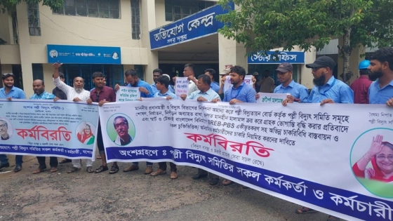 বিজ্ঞপ্তিতে বলা হয়, স্মার্ট ও টেকসই বিদ্যুৎ ব্যবস্থা বিনির্মাণে পল্লী বিদ্যুতায়ন বোর্ড ও পল্লী বিদ্যুৎ সমিতিসমূহকে একীভূতকরণসহ অভিন্ন চাকরিবিধি বাস্তবায়ন এবং সকল চুক্তিভিত্তিক/ অনিয়মিত কর্মচারীদের চাকরি নিয়মিতকরণের দাবিতে গত ১ জুলাই থেকে দেশের ৮০টি পল্লী বিদ্যুৎ সমিতিতে পূর্বের ন্যায় জরুরি বিদ্যুৎ সেবা সচল রেখে কর্মবিরতি চলমান রয়েছে।