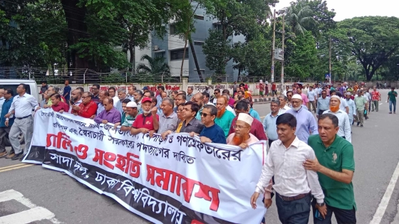 চলমান বৈষম্যবিরোধী ছাত্র আন্দোলন দমনে ছাত্র-জনতা হত্যা, নিপীড়ন ও গণগ্রেপ্তারের প্রতিবাদ এবং স্বৈরাচারী সরকারের পদত্যাগের দাবিতে র্যালি ও সংহতি সমাবেশ আয়োজন করেছে ঢাকা বিশ্ববিদ্যালয়ের বিএনপি-জামায়াতপন্থি শিক্ষকদের সংগঠন সাদা দল।