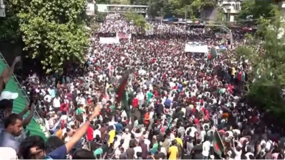 বৈষম্যবিরোধী ছাত্র আন্দোলন ঘোষিত ‘মার্চ টু ঢাকা’ কর্মসূচিতে কারফিউ ভেঙে ঢাকার রাজপথে লাখো মানুষ। মতিঝিল, পল্পন, ধানমন্ডি, মিরপুর, মালিবাগ, শনির আখড়া, আজিমপুরসহ বিভিন্ন এলাকা থেকে হাজার হাজার মানুষ শাহবাগের দিকে আসছেন। এ ছাড়া ঢাকার প্রবেশপথগুলো দিয়ে হেঁটে ঢাকায় প্রবেশ করছে হাজারো মানুষের মিছিল।