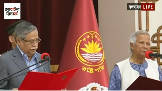 বঙ্গভবনের দরবার হলে অন্তর্বর্তীকালীন সরকারের প্রধান উপদেষ্টা হিসেবে শপথ নিয়েছেন ড. মুহাম্মদ ইউনূস। শপথ বাক্য পাঠ করান রাষ্ট্রপতি মোঃ সাহাবুদ্দিন।