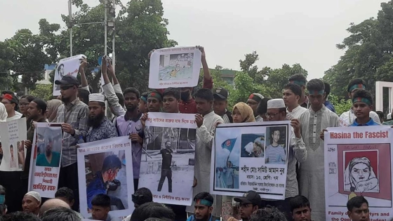 তারা শহীদ পরিবার ও নিপীড়িত ছাত্র-জনতার ব্যানারে সেখানে উপস্থিত হন। তারা বলেন, শিক্ষার্থীদের শান্তিপূর্ণ ও যুক্তিসংগত আন্দোলনে ঠাণ্ড মাথায় গুলি করে তৎকালীন সরকার এবং সরকারের মদদপুষ্ট পুলিশ বাহিনী গণহত্যা চালিয়েছে। সরকারের অঙ্গ সংগঠনের নেতাকর্মীরাও গুলি-হামলা চালিয়েছে। যার জন্য অসংখ্য মানুষ মারা গেছে। শিগগিরই এ গণহত্যার বিচার করতে হবে। সাবেক প্রধানমন্ত্রী শেখ হাসিনাকে যে কোনো মূল্যে বিচারের কাঠগড়ায় দাঁড় করাতে হবে। শেখ হাসিনা দেশকে মেধাশূন্য করতেই বল প্রয়োগ করে ক্ষমতায় থাকতে চেয়েছেন। আর নিরস্ত্র মানুষের ওপর তার অনুগত পুলিশ বাহিনীর ঊর্ধ্বতন কর্মকর্তারাও নিষিদ্ধ মারণাস্ত্র ব্যবহার করেছেন। এই যৌক্তিক আন্দোলনে যারা স্বজন হারিয়েছে তারা দোষীদের বিচার দাবি করছি।
