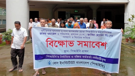 তিনি আরও বলেন, পরিচালক জাকির মূলত নির্বাহী অফিসার। যখন যে ডিজি আসেন তাকে ম্যানেজ করে নিজেই সুবিধা নেয় এবং অন্যদের অন্যায়ভাবে শাস্তি দিয়ে থাকে। তাদের কারণে পিআইবির আইন দ্বারা পরিচালিত হতে পারেনি। যেখানে বোর্ডের অনুমতিতে সব সিদ্ধান্ত নেওয়ার কথা থাকলেও তিনি ডিজিদের ব্যবহার করে অবৈধভাবে ৩টি পদোন্নতি ও ভাতা এবং সুযোগ-সুবিধা নিয়েছে। আমি ২০ বছরে কোনো প্রমোশন না পেলেও একাধিক ব্যক্তি স্বল্প সময়ে অযৌক্তিকভাবে ৩টা প্রমোশন পেয়েছে। যারা অন্যায়ের প্রতিবাদ করেছে, তাদের জুলুম-নির্যাতন করা হয়েছে।