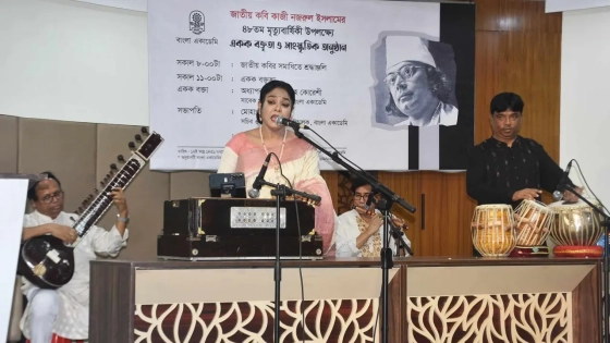জাতীয় কবি কাজী নজরুল ইসলামের ৪৮তম মৃত্যুবার্ষিকী উপলক্ষে একক বক্তৃতা ও সাংস্কৃতিক অনুষ্ঠান হয়েছে। মঙ্গলবার (২৭ আগস্ট) জাতীয় কবি কাজী নজরুল ইসলামের ৪৮তম মৃত্যুবার্ষিকী উপলক্ষে বাংলা একাডেমি এ আয়োজন করে।