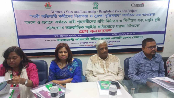 সোমবার (৩১ জুলাই) রাজধানীর সেগুনবাগিচায় ঢাকা রিপোর্টার্স ইউনিটির সাগর-রুনি মিলনায়তনে দেশে ও প্রবাসে কর্মরত নারী গৃহকর্মীদের প্রতি নির্যাতন ও নিপীড়ন এবং মজুরি চুরি প্রতিরোধে আন্তর্জাতিক আইনি কাঠামোতে সুরক্ষা নিশ্চিতের দাবিতে বাংলাদেশি অভিবাসী মহিলা শ্রমিক অ্যাসোসিয়েশন আয়োজিত এক সংবাদ সম্মেলনে এসব কথা বলেন বক্তারা।