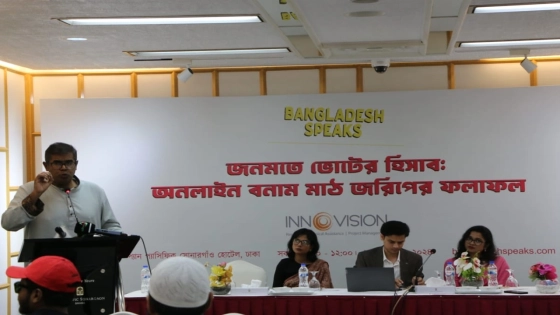 মঙ্গলবার (১০ সেপ্টেম্বর) রাজধানীর একটি হোটেলে ইনোভিশন কনসাল্টিংয়ের বাংলাদেশ স্পিকস শীর্ষক মাইক্রো-পোলিং প্ল্যাটফর্ম কর্তৃক পরিচালিত এই জরিপের ফলাফল প্রকাশ করা হয়।