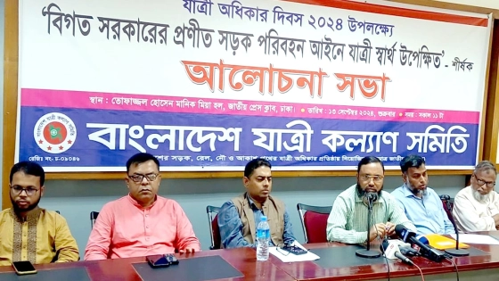 বিগত ১৫ বছরের বেশি সময়ে পরিবহন সেক্টরে যাত্রী স্বার্থের সিদ্ধান্তগুলো বাস মালিক সমিতি ও শ্রমিক ফেডারেশনের গুটিকয়েক নেতাদের প্রেসক্রিপসনে নেওয়া হতো বলে অভিযোগ করেছে যাত্রী অধিকার আদায়ে কাজ করা বেসরকারি সংগঠন বাংলাদেশ যাত্রী কল্যাণ সমিতি। সে সঙ্গে লুটপাটের উদ্দেশ্যে যোগাযোগে একের পর এক মেগা প্রকল্প নেওয়ারও অভিযোগ সংগঠনটির। শুক্রবার (১৩ সেপ্টেম্বর) জাতীয় প্রেস ক্লাবে যাত্রী অধিকার দিবসের আলোচনা সভায় সংগঠনের পক্ষ থেকে এ অভিযোগ আনা হয়েছে। বাংলাদেশ যাত্রী কল্যাণ সমিতির যাত্রী অধিকার দিবস উপলক্ষে ‘বিগত সরকারের প্রণীত সড়ক আইনে যাত্রী স্বার্থ উপেক্ষিত’ শীর্ষক এই আলোচনা সভার আয়োজন করে। উল্লেখ্য যে, যাত্রী হয়রানি, ভাড়া নৈরাজ্য, পরিবহনে বিশৃঙ্খলা, অরাজকতা, সড়ক দুর্ঘটনা, অন্যায্য ও অগ্রহণযোগ্য কর্মকাণ্ডের বিরুদ্ধে দাবি আদায়ের প্রতীকী দিবস হিসেবে বাংলাদেশে ৬ষ্ঠ বারের মতো এই দিবসটি পালিত হচ্ছে।