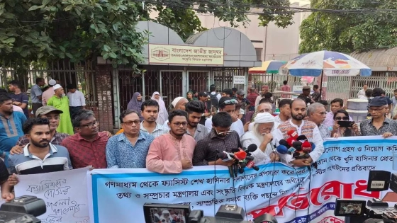 গণহত্যাকারী স্বৈরশাসক শেখ হাসিনার দোসরদের গণমাধ্যম থেকে অপসারণ, নিয়োগ কমিশন গঠন এবং তথ্য ও সম্প্রচার মন্ত্রণালয় এবং সংস্কৃতি মন্ত্রণালয়ে স্বেচ্ছাচারী নিয়োগ ও মব ভায়োলেন্সের প্রতিবাদ জানিয়েছে বৈষম্যবিরোধী গণমাধ্যম আন্দোলন।