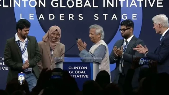 ড. ইউনূস বলেন, তারা যেভাবে কথা বলে, এরকম কথা আমি কখনো শুনিনি। তারা নতুন পৃথিবী, নতুন বাংলাদেশ গড়তে প্রস্তুত। প্লিজ আপনারা তাদের হেল্প করবেন। যেন তারা তাদের স্বপ্ন পূরণ করতে পারে। এ গুরু দায়িত্ব আমাদের সবার নিতে হবে। এ সময় তিনি বিল ক্লিনটনের হাত ধরে বলেন, আপনি আমাদের সাথে আছেন এ স্বপ্ন পূরণে।