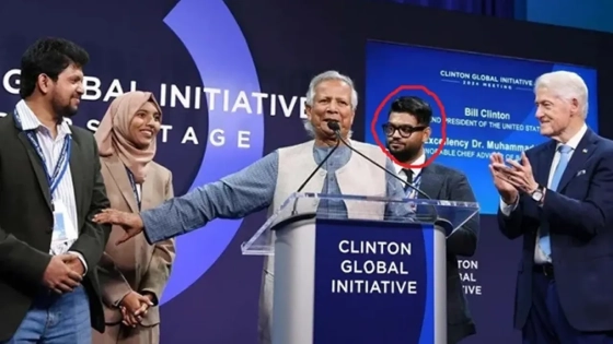 যুক্তরাষ্ট্রের সাবেক প্রেসিডেন্ট বিল ক্লিনটন আয়োজিত একটি অনুষ্ঠানে বক্তব্য দিয়েছেন অন্তর্বর্তী সরকারের প্রধান উপদেষ্টা ড. মুহাম্মদ ইউনূস। এ সময় তার বিশেষ সহকারী মাহফুজ আলমসহ দুজনকে স্টেজে ডেকে এনে আন্দোলনে তাদের ভূমিকা তুলে ধরেন। স্টেজে থাকা অপর এক তরুণকে নিয়ে উঠছে নানা প্রশ্ন, চলছে বিতর্কও।