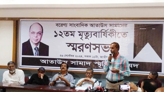 আতাউস সামাদের স্মৃতিচারণ করে বক্তারা বলেন, মহান মুক্তিযুদ্ধের সময় সাংবাদিকতার পাশাপাশি মুক্তিযোদ্ধাদের সাহায্য সহযোগিতা করেছেন আতাউস সামাদ। শুধু তাই নয় দেশে যখন স্বৈরাচারের আর্বিভাব ঘটেছে তখন তার বিরুদ্ধে কলম দিয়ে লড়েছেন। গণতন্ত্র, মতপ্রকাশের স্বাধীনতা ও সামাজিক ন্যায়বিচার প্রতিষ্ঠার লড়াইয়ে অক্লান্ত যোদ্ধা ছিলেন তিনি। একজন আপাদমস্তক আদর্শিক মানুষ ছিলেন সামাদ।