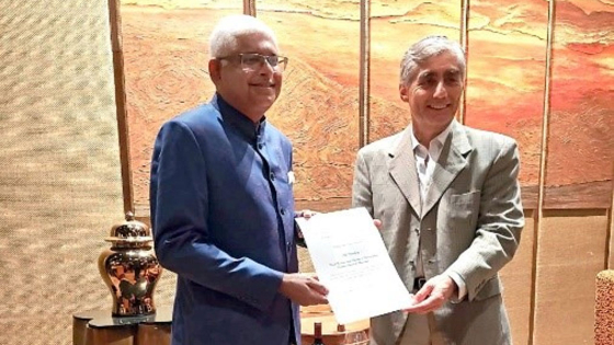 সম্প্রতি নয়াদিল্লির তাজ প্যালেস হোটেলে এই সম্মাননা অনুষ্ঠানের আয়োজন করেন ভারতে নিযুক্ত চিলির রাষ্ট্রদূত জুয়ান অ্যাঙ্গুলো।