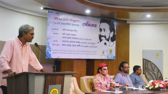 বাংলা একাডেমির মহাপরিচালক অধ্যাপক মোহাম্মদ আজমের সভাপতিত্বে স্বাগত বক্তব্য দেন বাংলা একাডেমির সচিব মোহা. নায়েব আলী। ‘নতুন রাজধানীর কবি রুদ্র মুহম্মদ শহিদুল্লাহ’ শীর্ষক প্রবন্ধ উপস্থাপন করেন কবি সাখাওয়াত টিপু।