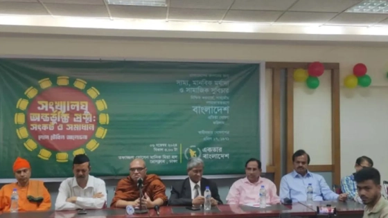 বাংলাদেশে সংঘটিত সাম্প্রদ্রায়িক হামলা ও সংখ্যালঘু নিপীড়নসহ অন্যান্য সমস্যাগুলোকে চিহ্নিত করে এর সম্ভাব্য সমাধান নির্ধারণের জন্য ‘সংখ্যালঘু অন্তর্ভুক্তি প্রশ্ন : সংকট ও সমাধান’ শীর্ষক গোল টেবিল আলোচনা সভা অনুষ্ঠিত হয়েছে।
