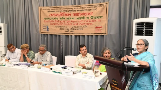 বক্তারা বলেন, বাংলাদেশের কৃষি শ্রমিকদের উন্নয়নে ন্যায্য মজুরি, সামাজিক সুরক্ষা এবং সমান সুযোগ প্রদানকে অগ্রাধিকার দিতে হবে। কৃষিপণ্যের ন্যায্য দাম এবং পরিবহন সংকটের কারণে শষ্য উৎপাদন ঝুঁকির কথাও জানান তারা।