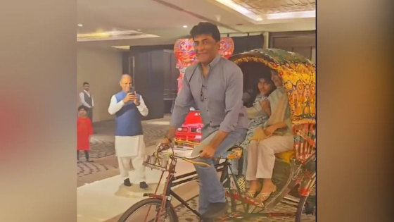 পোস্টে তিনি লিখেন, লা মেরেডিয়ানের ১৪তম তলায় রিকশা টানা। জীবিকা অর্জনের জন্য প্রায় সমস্ত আবহাওয়ায় সারাদিন ধরে টানাটানি করা সত্যিই খুব কঠিন। রিকশাচালকদের প্রতি গভীর শ্রদ্ধা। স্যালুট’