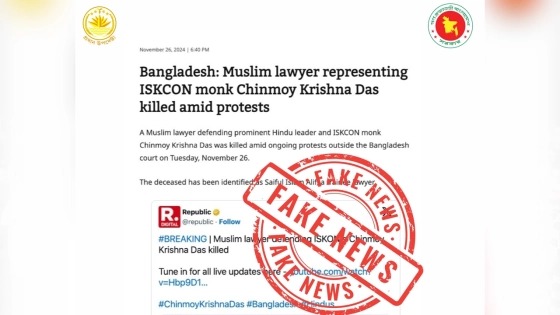 পোস্টে জানানো হয়েছে, কিছু ভারতীয় গণমাধ্যম দাবি করছে, আজ চট্টগ্রামে নির্মমভাবে খুন হওয়া আইনজীবী সাইফুল ইসলাম আলিফ চিন্ময় কৃষ্ণ দাসের প্রতিনিধিত্ব করছিলেন। দাবিটি মিথ্যা এবং খারাপ উদ্দেশ্য নিয়ে ছড়ানো হচ্ছে। সে সঙ্গে সবাইকে যে কোনো ধরনের উসকানিমূলক ও মিথ্যা প্রতিবেদন থেকে বিরত থাকার অনুরোধ করা হয়েছে।