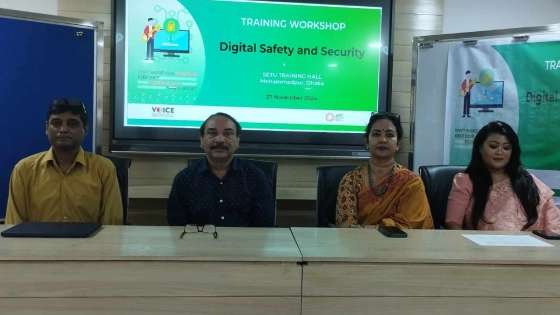 আজ বুধবার (২৭ নভেম্বর) রাজধানীর আদাবরে বেসরকারি গবেষণা প্রতিষ্ঠান ভয়েসের উদ্যোগে ডিজিটাল সুরক্ষা ও নিরাপত্তা শীর্ষক এক প্রশিক্ষণ কর্মশালায় বক্তারা একথা বলেন। নারী সাংবাদিক এবং মানবাধিকার কর্মীদের অংশগ্রহণে এ কর্মশালা অনুষ্ঠিত হয়।