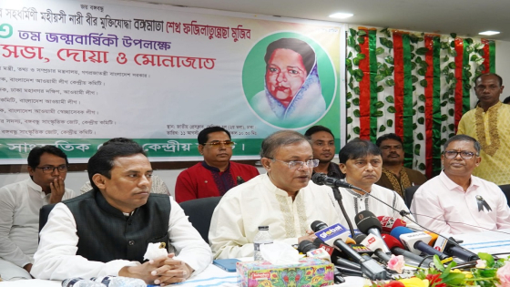আজ শুক্রবার (১১ আগস্ট) দুপুরে রাজধানীর তোপখানা রোডে জাতীয় প্রেস ক্লাবে বঙ্গবন্ধু সাংস্কৃতিক জোট আয়োজিত ‘বঙ্গমাতা বেগম ফজিলাতুন্নেছা মুজিবের ৯৩তম জন্মবার্ষিকী উপলক্ষে এক আলোচনা সভায় সমসাময়িক প্রসঙ্গে মন্ত্রী এ মন্তব্য করেন।