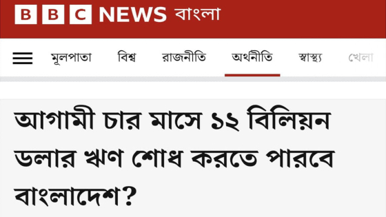 এর আগে গত বৃহস্পতিবার (১০ আগস্ট) বিবিসি বাংলা ‘আগামী চার মাসে ১২ বিলিয়ন ডলার ঋণ শোধ করতে পারবে বাংলাদেশ?’ শিরোনামে একটি প্রতিবেদন প্রকাশ করে।