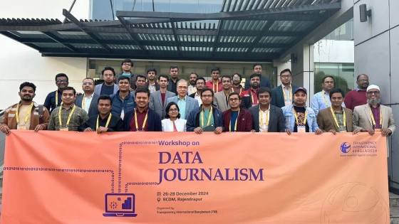 শনিবার (২৯ ডিসেম্বর) ট্রান্সপারেন্সি ইন্টারন্যাশনাল বাংলাদেশ (টিআইবি) আয়োজিত ‘ওয়ার্কশপ অন ডেটা জার্নালিজম’-এর সমাপনী অনুষ্ঠানে তিনি এসব কথা বলেন। গাজীপুরের রাজেন্দ্রপুর ব্র্যাক সিডিএমে ২৬ থেকে ২৮ ডিসেম্বর পর্যন্ত এই কর্মশালা অনুষ্ঠিত হয়। দেশে প্রথমবারের মতো অনুষ্ঠিত এ ধরনের প্রশিক্ষণে ২৫ জন পেশাদার সাংবাদিক অংশ নেন। পরে সাংবাদিকদের সনদপত্র প্রদান করা হয়।
