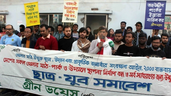দেশের সব মাঠ-পার্ক ও উদ্যানে স্থাপনা নির্মাণ বন্ধ ও জনসাধারণের জন্য উন্মুক্ত করার দাবি করেছে পরিবেশবাদী সংগঠন গ্রিন ভয়েস।