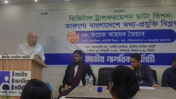 মঙ্গলবার (১৪ জানুয়ারি) রাতে বাংলামোটর জাতীয় নাগরিক কমিটির কেন্দ্রীয় কার্যালয়ে ডিজিটাল ট্রান্সফরমেশন ডেটা ভিশন তারুণ্যের বাংলাদেশে তথ্যপ্রযুক্তি বিপ্লব আলোচনা অনুষ্ঠানে এসব কথা বলেন তিনি। অনুষ্ঠানের আয়োজন করে জাতীয় নাগরিক কমিটি।