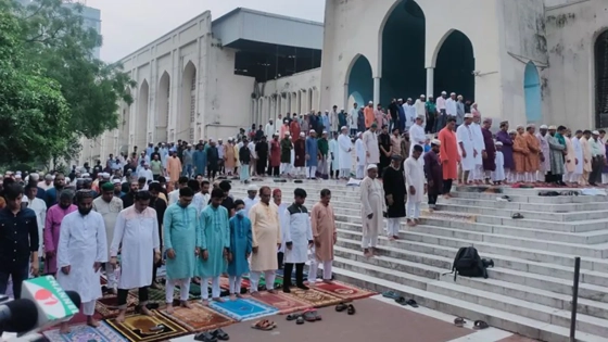 ধর্মীয় মর্যাদা ও গভীর ভাবগাম্ভীর্যের মধ্যদিয়ে জাতীয় মসজিদ বায়তুল মোকাররমে পবিত্র ঈদুল আজহার প্রথম জামাত অনুষ্ঠিত হয়েছে। নামাজের পর মুসলিম উম্মাহর শান্তি, সমৃদ্ধি ও কল্যাণ কামনায় বিশেষ মোনাজাত অনুষ্ঠিত হয়েছে।