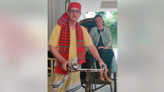 ঢাকায় নিযুক্ত এক রাষ্ট্রদূত মাথায় গামছা বেঁধে ও লুঙ্গি পরে রাস্তায় রিকশা চালাচ্ছেন। সঙ্গে যাত্রী হিসেবে রয়েছেন তার স্ত্রী। বলা হচ্ছে ঢাকায় নিযুক্ত জার্মান রাষ্ট্রদূত অখিম ট্রস্টারের কথা।