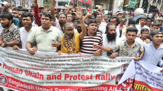 শুক্রবার (১১ জুলাই) সকালে জাতীয় প্রেস ক্লাবের সামনে সম্মিলিত সনাতনী জাগরণ জোটের উদ্যোগে মানববন্ধন ও বিক্ষোভ সমাবেশে জোটের নেতারা এ অভিযোগ করেন।