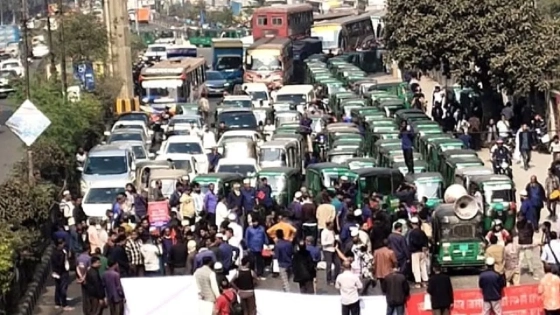 রাজধানীর ঢাকা মহানগরীতে নির্ধারিত অটোরিকশার বাইরে আরও অটোরিকশার চলাচলের অনুমতির দাবিতে সড়ক অবরোধ করে বিক্ষোভ করেছেন চালকরা।