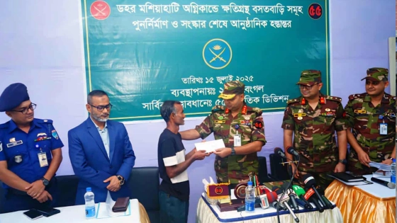 মঙ্গলবার (১৫ জুলাই) জিওসি ৫৫ পদাতিক ডিভিশন এবং যশোরের এরিয়া কমান্ডার, যশোরের মেজর জেনারেল জে এম ইমদাদুল ইসলাম আনুষ্ঠানিকভাবে ক্ষতিগ্রস্ত পরিবারের মধ্যে মেরামত/পুনর্নির্মাণ করা ঘরবাড়ি ও প্রয়োজনীয় আসবাবপত্র হস্তান্তর করেন।