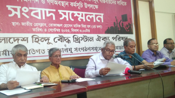 সরকারি দলের নির্বাচনী ইশতেহারে প্রতিশ্রুত সংখ্যালঘু স্বার্থবাদর অঙ্গীকারসমূহ বাস্তবায়নের দাবিতে গণঅনশন, গণঅবস্থান ও মহাসমাবেশ করবে বাংলাদেশ হিন্দু বৌদ্ধ খ্রিষ্টান ঐক্য পরিষদের নেতৃত্বাধীন ধর্মীয় জাতিগত সংখ্যালঘু সংগঠনসমূহের ঐক্য মোরচা।