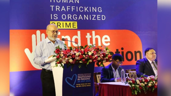 বুধবার (৩০ জুলাই) রাজধানীর সোনারগাঁও হোটেলে আন্তর্জাতিক মানব পাচার দিবস উপলক্ষে আয়োজিত এক সেমিনারে এসব কথা বলেন বক্তারা। স্বরাষ্ট্র মন্ত্রণালয় ও বাংলাদেশ জাতিসংঘ অভিবাসন নেটওয়ার্কের (BDUNNM) কাউন্টার-ট্র্যাফিকিং ইন পারসনস টেকনিক্যাল ওয়ার্কিং গ্রুপ এই সেমিনারের আয়োজন করে। সেমিনারে বেসরকারি ও আন্তর্জাতিক সংস্থার প্রতিনিধিরা অংশগ্রহণ করেন। দিবসটির প্রতিপাদ্য ছিল— ‘সংঘব্ধ অপরাধ মানব পাচার, বন্ধ হোক শোষণের অনাচার।’