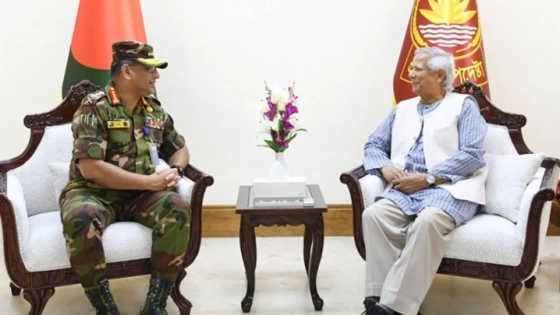 সেনাপ্রধান জেনারেল ওয়াকার-উজ-জামান প্রধান উপদেষ্টাকে অন্তর্বর্তীকালীন সরকারের প্রতি তার পূর্ণ সহযোগিতার আশ্বাস দেন এবং চারপাশে ছড়িয়ে পড়া গুজবে কান না দেওয়ার অনুরোধ জানান।